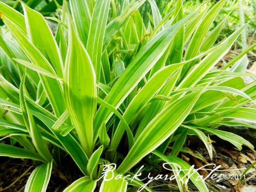 ARE THEY LEAVES OR BLADES? Carex siderosticha variegaeta looks like a leafy ornamental but is in the grass/sedge family. This one came from Heronswood about six years ago. It grows to about 8-10 inches tall and a spread of about 12-18 inches. It forms a tidy clump, is easily divided and makes a nice ground cover in shade or sun. It goes semi-dormant here over the winter and is quick to green up as winter fades. More information about the these sedges can be found here.
