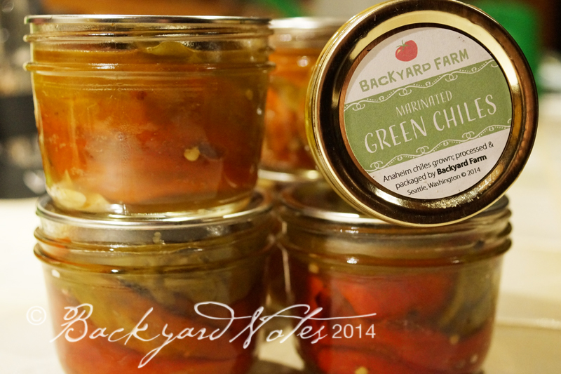 In her book Well Preserved, Eugenia Bone has a recipe that she attributes to Michigan State Extension, for Marinated Peppers. She call for red bell peppers but I have found it works just as well for Anaheim and other home grown sweet/hot peppers. (Since I do not have permission to reprint the recipe here I will leave it to you to find it online; like here for example.)