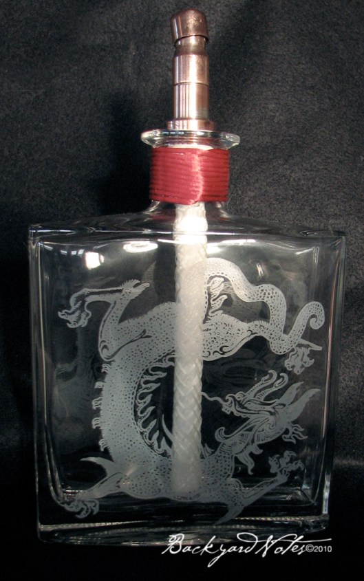SO MANY TALENTED FAMILY MEMBERS make Christmas a delight. I have to brag about all of the beautiful and surprising handmade gifts that were given and received. My sisters and mother knit; mother and one sister sew and quilt ( I gave up sewing about fifteen years ago and knitting more than forty!). Both daughters sew and quilt, one knits a little and one crochets a little bit. One of the sisters (Renée) and her husband recycle bottles to produce Twice Poured Candles and a new recycled bottle oil lamp (the one above from a Yazi bottle) that was inspired by this idea.