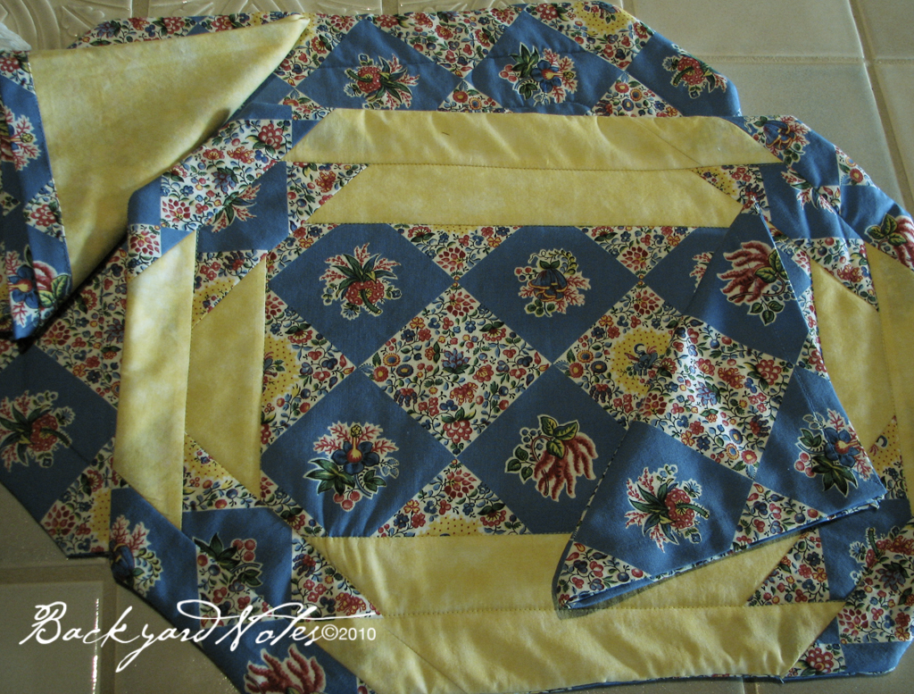 My mother does a lot of beautiful quilting and she made these sunny, reversible placemats and napkins for us. We’ll feel like we’re in the south of France when it is dreary here. She also knitted a very colorful and warm pair of wool socks for me!