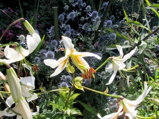 One of these chairs made its way to our house years ago and has been hanging out with the potting bench. As a testament to the quality of its overall construction, the chair has rusted only slightly and the seat and seat back material has held up well too, in the elements. Three months ago we found a second chair in a storage room where the office used to be and I decided to bring it home and dress it up for the garden rather than scrap it to the metal guy who parks just outside the transfer station.