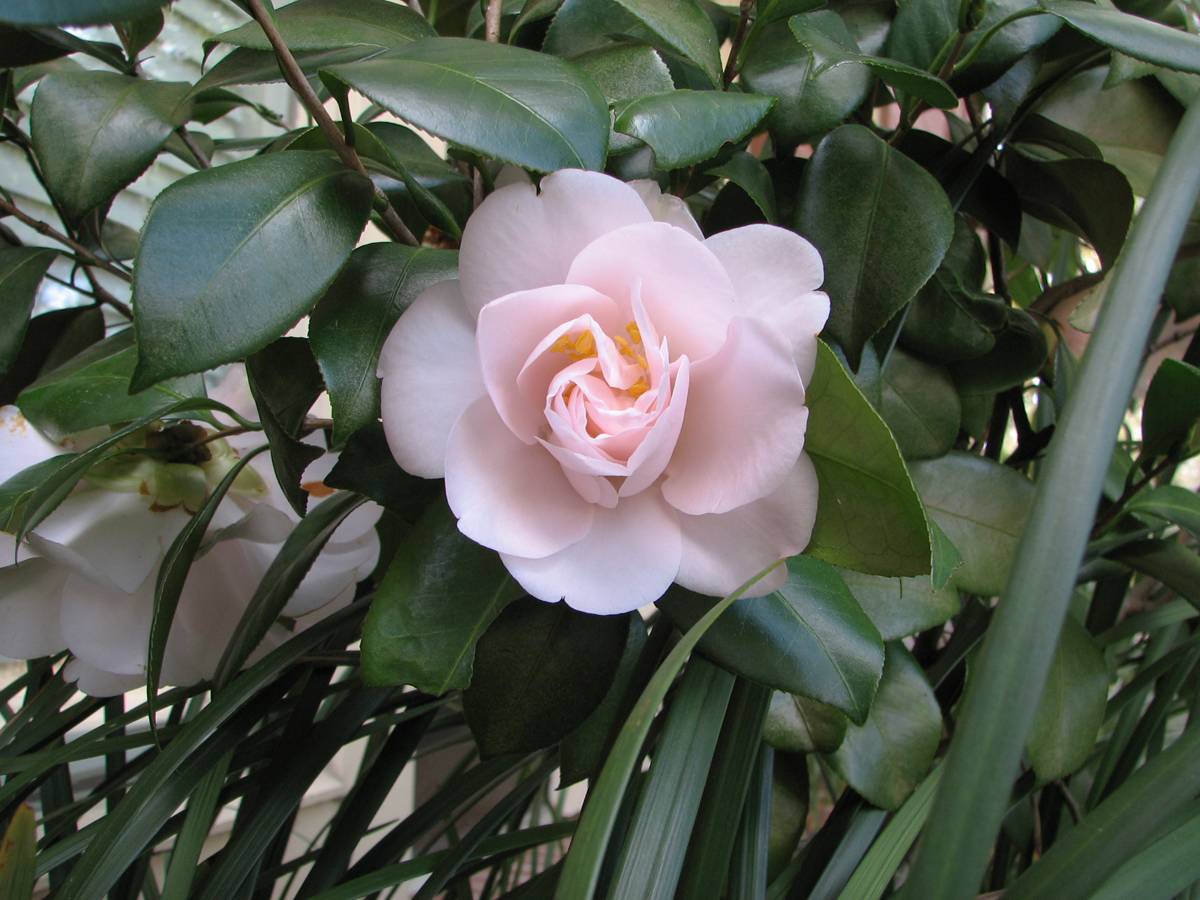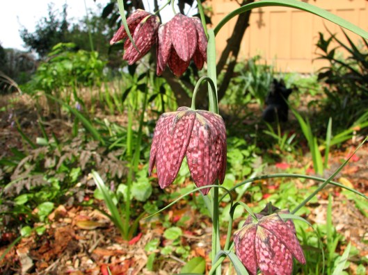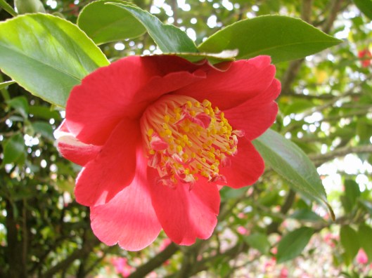 St. Francis of Assisi used to stand guard over Grandma T’s house plants on the enclosed back porch. I inheirited him and this is his second place in the garden. He used to stand under the birdbath but the racoons kept knocking him over and he had to have some repairs made. He seems happy here under the white camelia and among the bluebells, lilies and amemones.