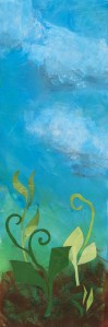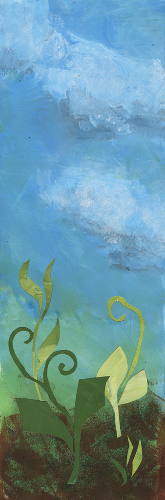 Yesterday mom and I went to visit my sister Debbie at her 2 acres of gardening space in Sbnohomish and this piece was in her yard. It looks just right under tall trees, rhododendrons, and maianthemum and native bleeding hearts at its feet. One reason for the visit was to split up some hostas that had come from our grandmother’s garden. Since they are just now poking out of the ground, the time was right for splitting up.