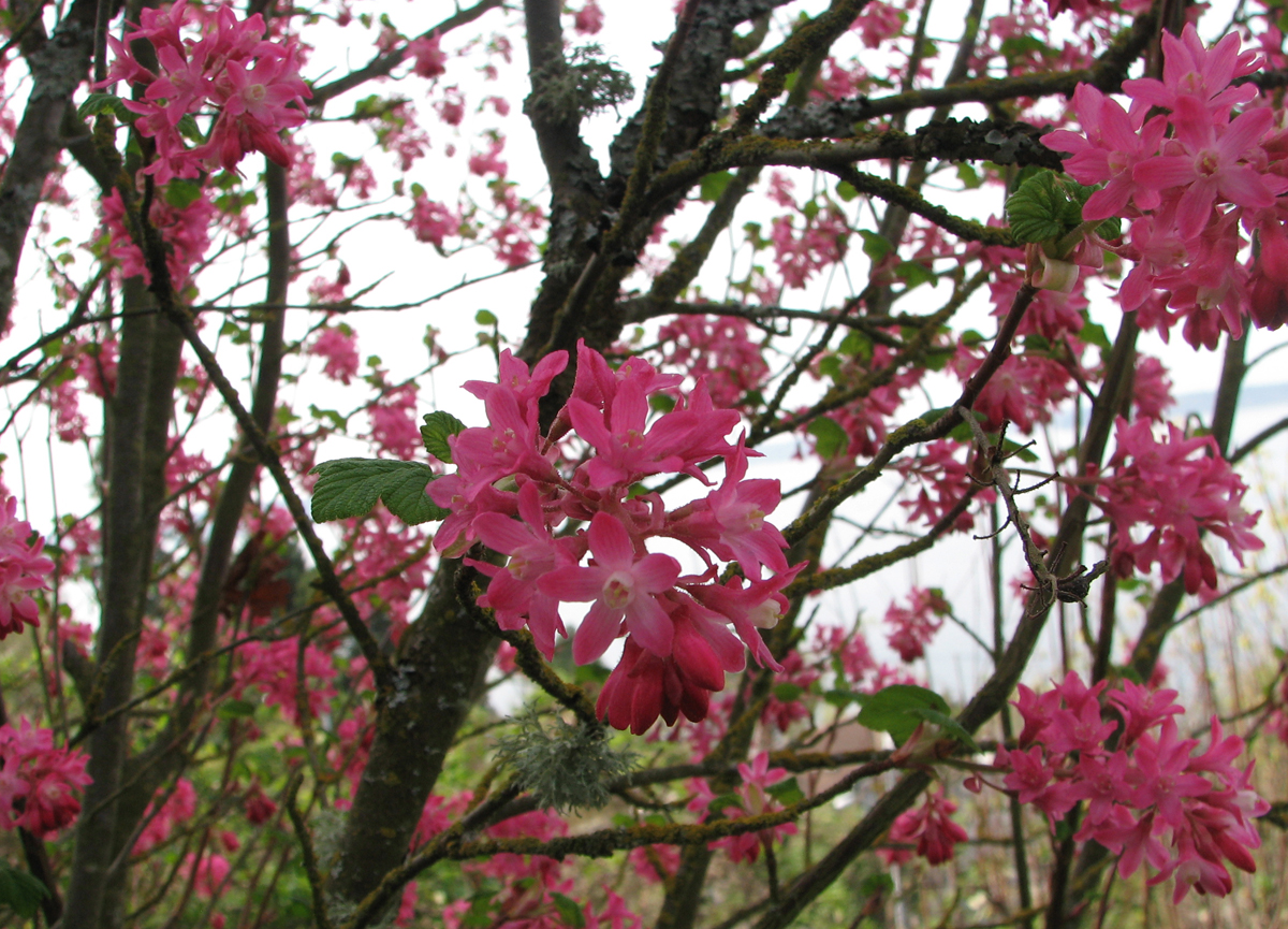 Surrounded by spring blooms now, Ho Tai will be shaded under a summer rose with a view of Puget Sound.
