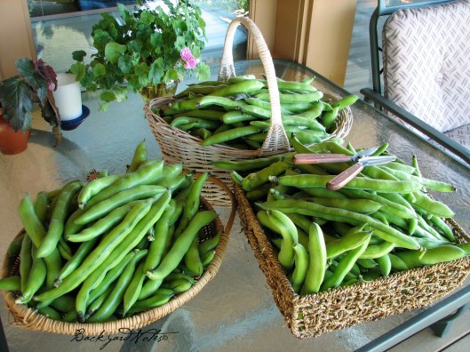 Friday was lovely and warm and I picked all of the fava beans. The vines are done flowering and producing so they all came out of the ground. The vines were six feet tall. ‘Aqua dulce’ is a heavy bearing variety with pods up to eight inches long. I will plant the same this fall. I also picked all of the peas even though these vines continue to produce flowers, although not too many so they to will be pulled up to make way for peppers, eggplant and other vegetables.
