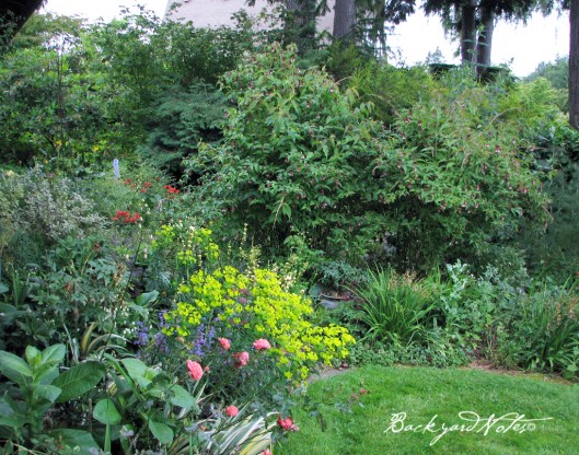 Here is what was blooming around the garden on the Friday afternoon tour. It looks like summer on the ground, and thankfully there is color to offset the daily gray. From here on it will be weeding and deadheading for a while, pleasantly meditative chores. When I had my haircut a couple of days ago the stylist imparted these words of wisdom, “chores bring enlightenment”, I really like that.