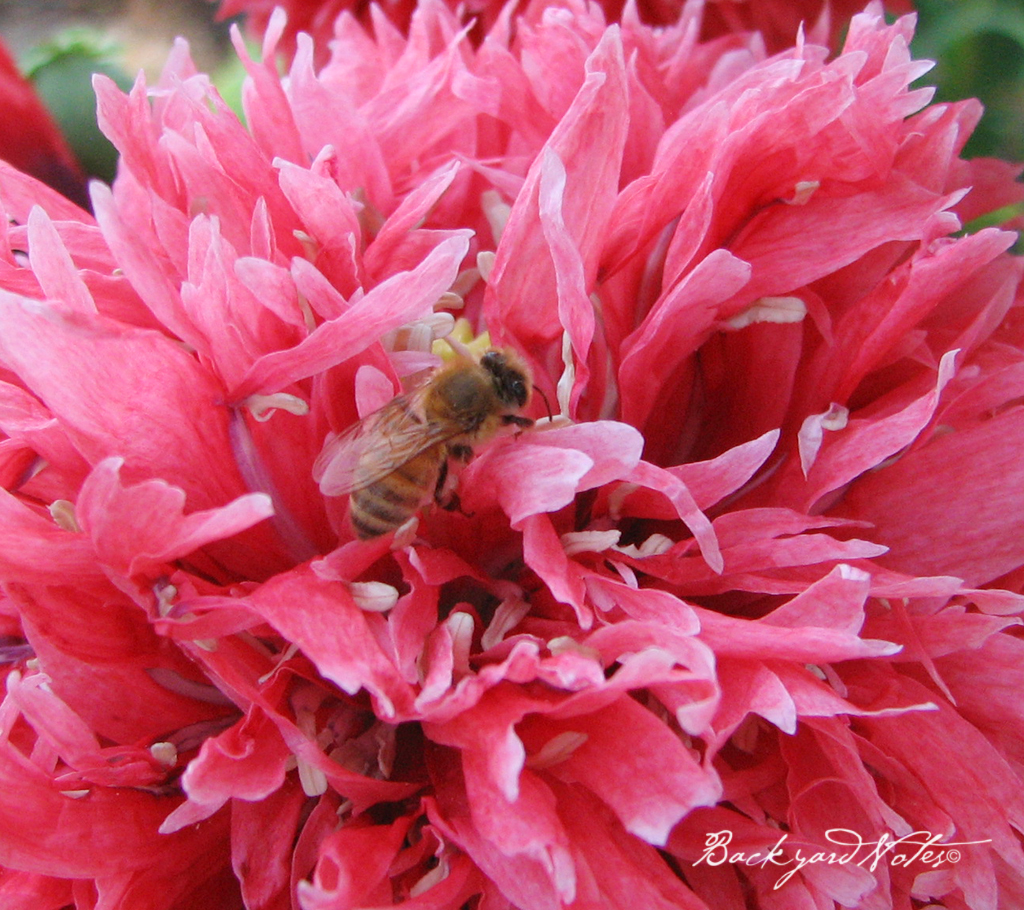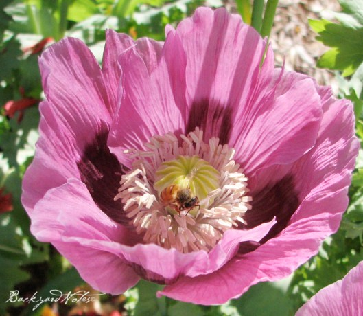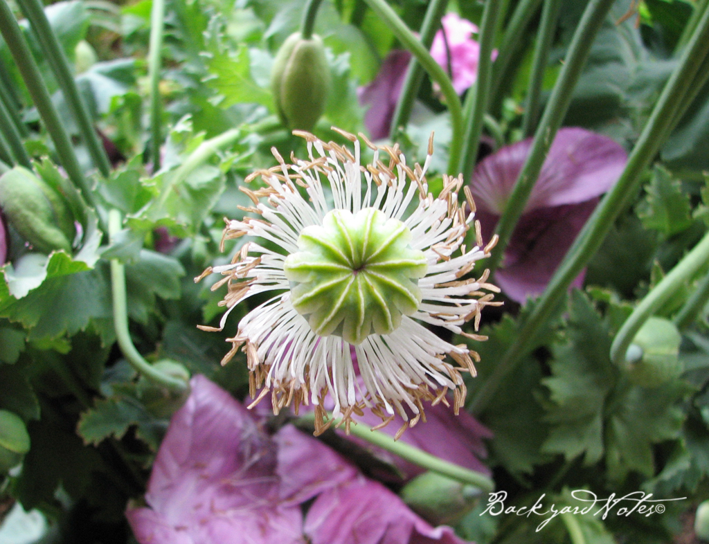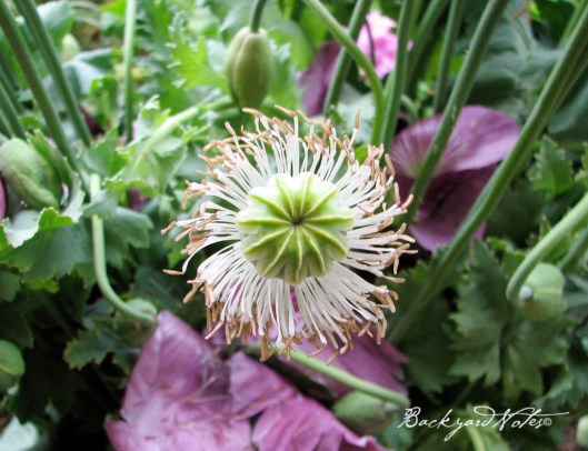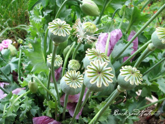 Most of the frilly poppies are volunteers in the vegetable garden, mostly from seed that got into the compost, that was then incorporated back into to the garden. There were several plants in with the fava beans, so the poppies came out too. I stripped off most of the leaves, cut the stems and put them all into a tall galvanized container for a big poppy bouquet on the deck. I think that the seedheads are really attractive and I am continually drawn to them as the petals fall away, wanting to draw and paint them every year. Perhaps it is the simple form.