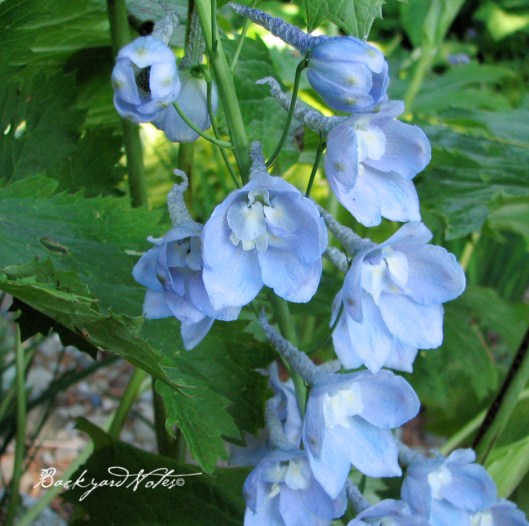 This is of the ‘Connecticut Yankee’ series of delphiniums. I love the pale blue color and the petals have a slight iridescent quality.