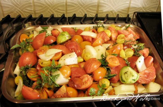And, I think that we have finally hit the 50° for steady, average overnight temperature (I hope). On Sunday I put some of the tomatoes into the ground. As you can see from the photo above, I am using SRM-Red Plastic Tomato Mulch. I bought this product from Territorial Seed Company a few years back and never got around to using it. Yesterday afternoon the soil temperature 6″ below the red plastic was 64°, while 18′ away the soil temperature was 59°; so it makes a difference. I will use this same technique with some of the remaining tomatoes and plant some without at the same time for a control.