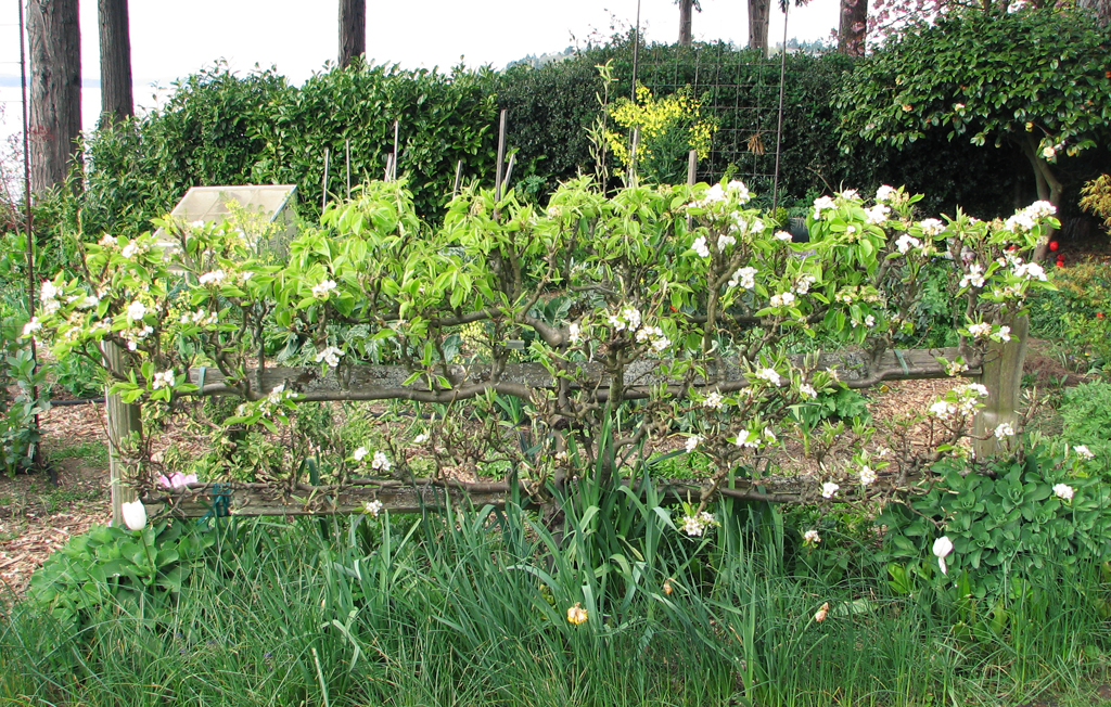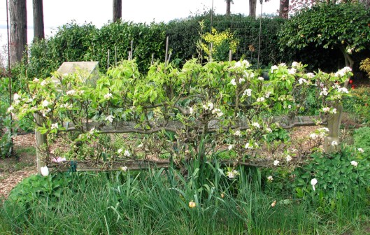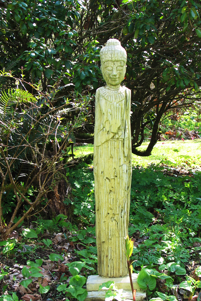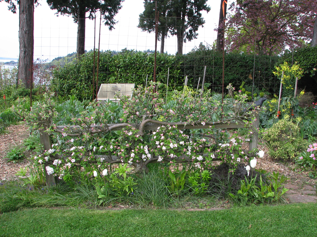 Walking out of the sunken garden brought us to a broad, open lawn planted with cherry, very old apple and rare specimen trees. Looking out over all of this were a couple of totem poles. This little scenario caught my eye: from one bird to another…