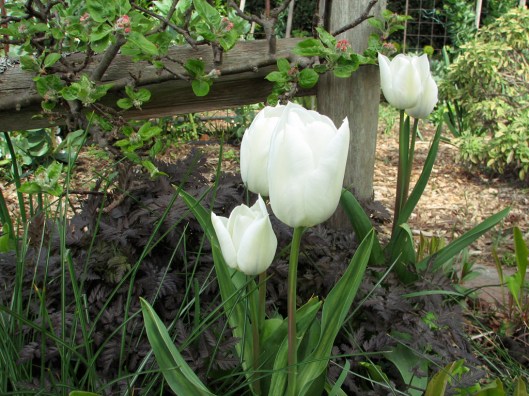 The floral fantasy is the garden’s overwhelming use of tulips and narcissus at this time of the year. Could this ever be possible in your yard? I doubt it–a full time job just to deadhead. My only complaint is a lack of identification for the tulip and narcissus varieties. The garden planners have made extensive use of airy, blue and white Forget-Me-Not, myosotis scorpioides as filler to beautiful effect.