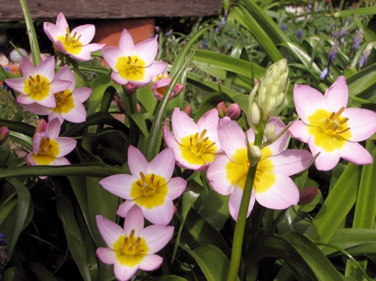 Strolling along the paths here is like being the proverbial kid in the candy store, where do I look next? Candy colored flowers abound. Another filler with tulips is erysimum cheiri, commonly known as Wallflower and charming little English daisies, bellis perennis, in myriad colors.