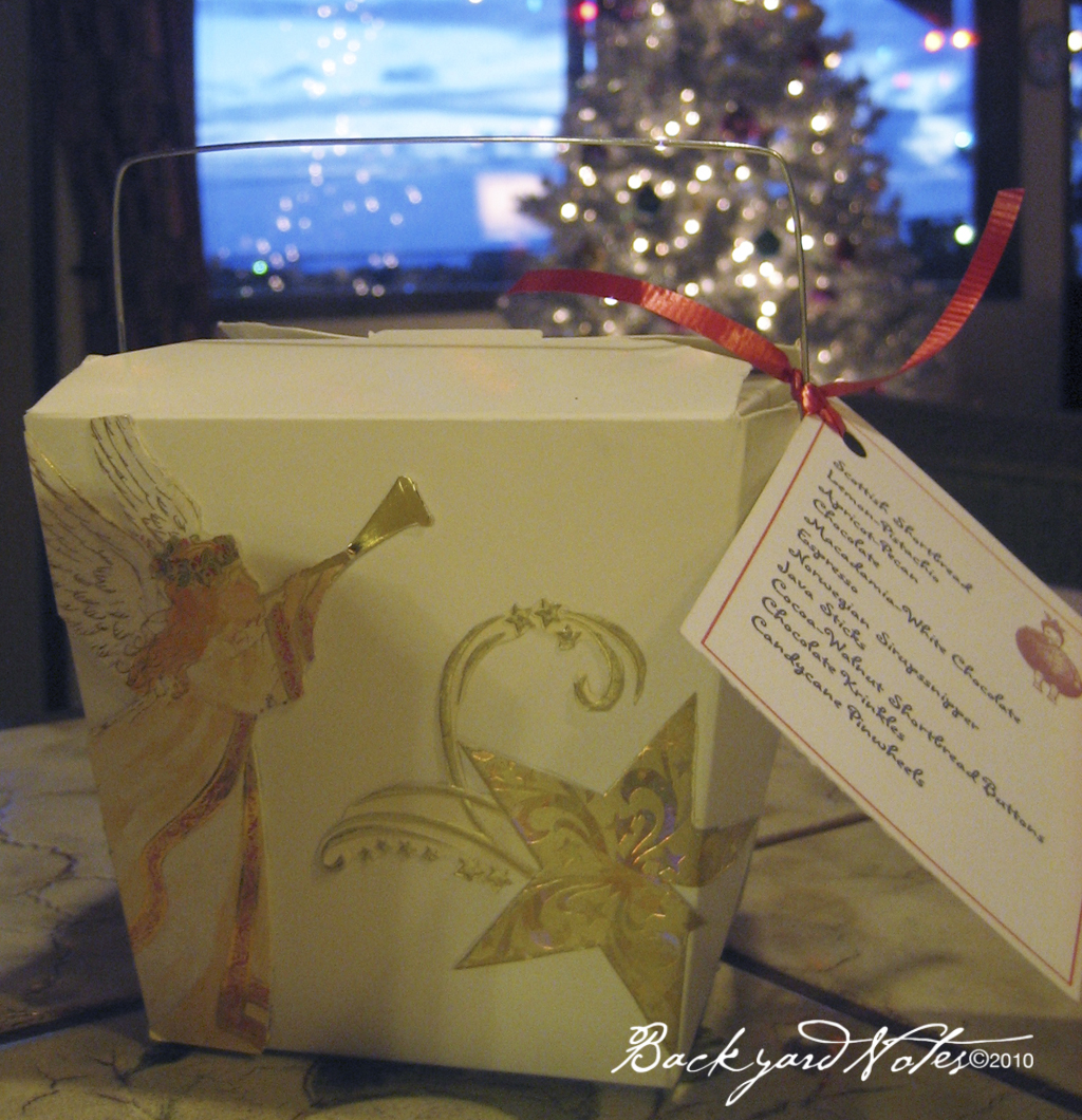 AS DECEMBER wound down to Christmas Day I said so long to many jars of of jams, preserves, and pickles and little takeout cartons filled with cookies (decorated with art cut from Christmas cards received last year; thanks to Renée for the photo).