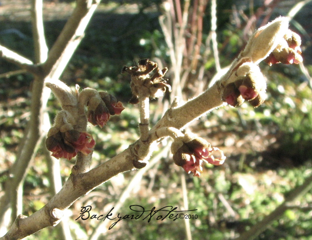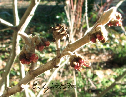 Plants continue to grow and show through the winter. The witch hazel, hamamelis x intermedia ‘Diane’  has begun blooming in the chill of December.