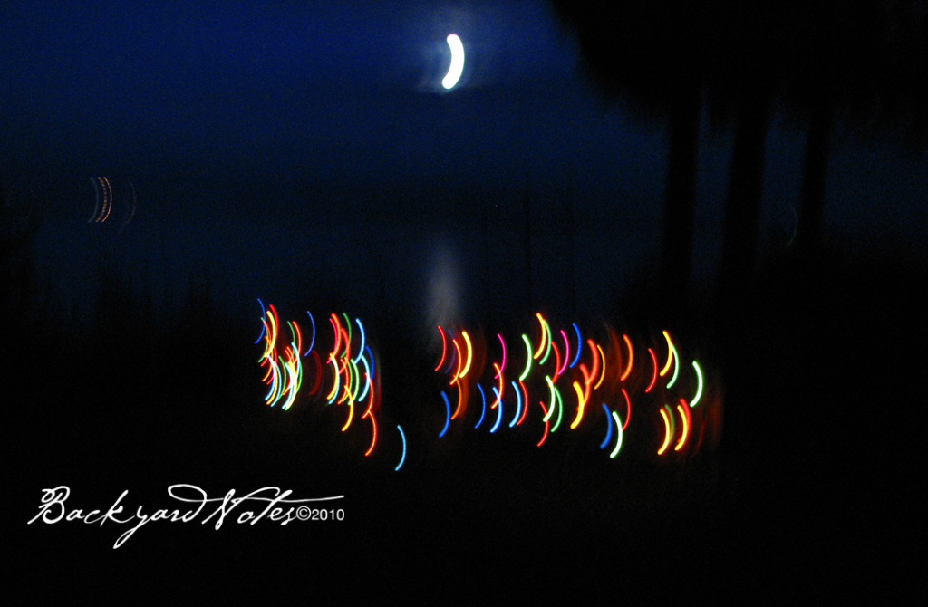 By moving the camera quickly I caught a more abstract composition of the moon and lights.