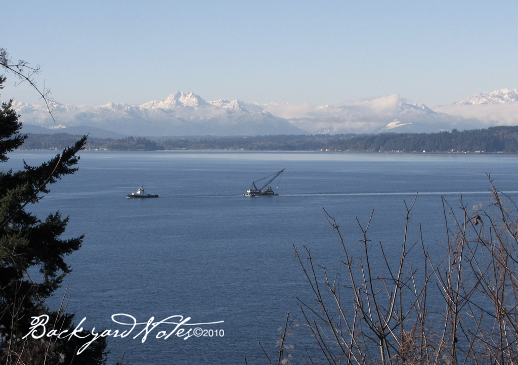 HARD TO BELIEVE NEARLY A MONTH HAS PASSED since the last post, but December days seem to pass all too quickly and each day was filled with things to do as December 24th approached. Two days before the first day of winter we had a glorious sun filled day and stunning views of newly fallen snow in the Olympic Mountains to the west; an uplifting break from lots of rainy days. I even did some weeding and cold damage cleanup.