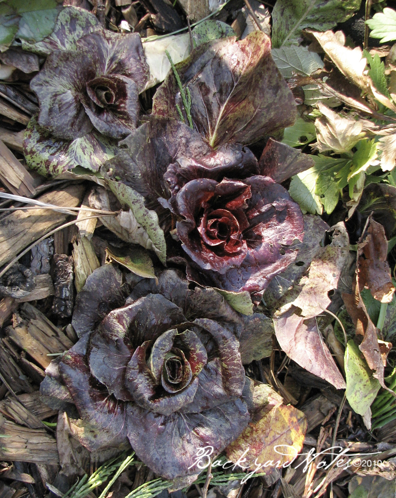 The fava bean plants, are growing nicely in spite of our coldsnap last month, as are some volunteer heads of raddichio ‘Castelfranco’, savoy cabbage, brussels sprouts and turnips. The broccoli plants really took a hit, so no more broccoli the rest of the winter.