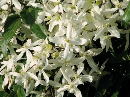 WHILE WE WERE AWAY the winter blooming clematis that we planted in 2010 began blooming in earnest. Masses of blooms and still blooming!