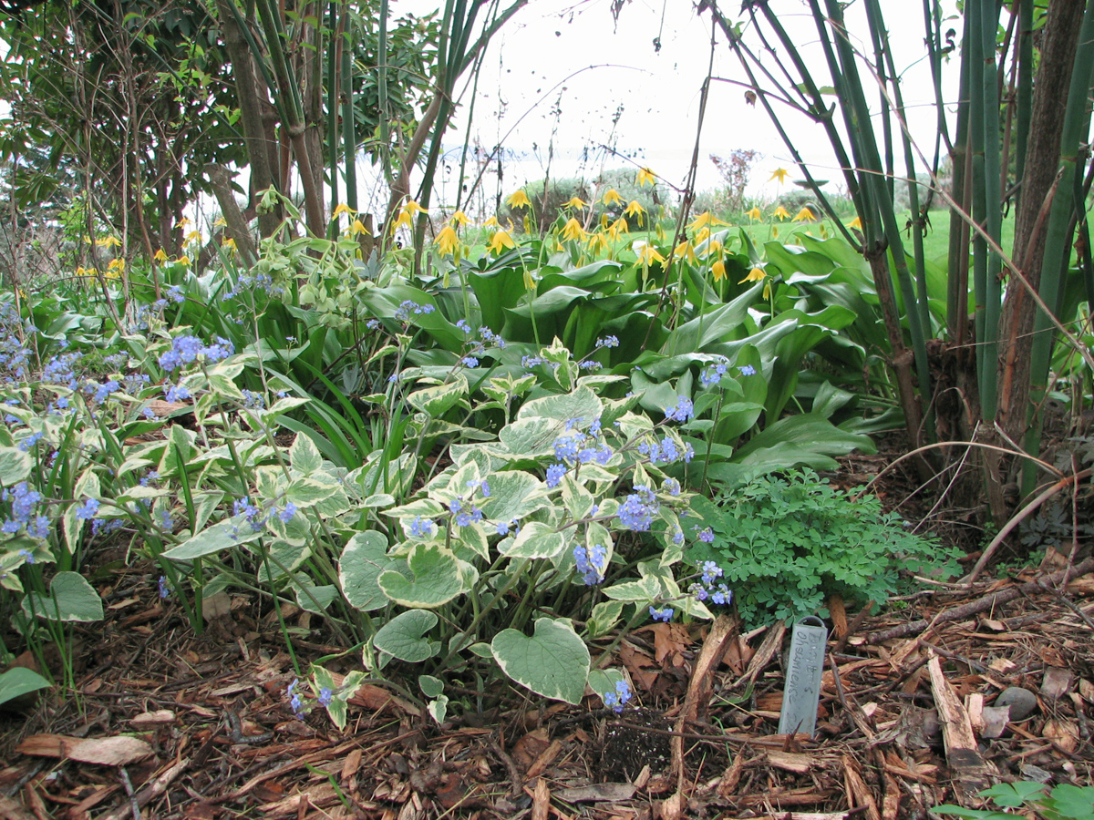 Speaking of the garden show, the display gardens were big! And showy of course, with fancy hardscape details, and lots of large specimen plantings. For me, there were few new ideas to incorporate into my garden; but that is not the reason I went. I went for the plant vendors. I was not disappointed and this year I made up for what I did not purchase through all of last year. I bought three daylilies: ‘Seal of Approval’, ‘Night Embers’ and ‘China Bride’ (Naylor Creek-great hosta selections); hachonechloa macra ‘Beni-kaze’, crocosmia x pottsii ‘Culzean Pink’, paeonia mascula ssp. russoi (tree  peony), echinacea ‘Sunrise’, and aruncus ‘Guinea Fowl’ (dwarf goat’s beard) from Far Reaches Farm (they have some very cool plants); lilies from my favorite source, B&D Lilies: ‘Rexona’, Belladona’, and ‘Yelloween’; ligularia ‘Osiris’ from Woodland Gardens of Port Orchard (no website), to add to my collection; and a small waterlily type dahlia, ‘Lauren Michele’ (I am partial to simple dahlia blooms) from Swan Island Dahlias in Oregon.  Every plant has a home in the garden except for the daylilies and dahlias which are in pots until I figure out their final locations in the garden.