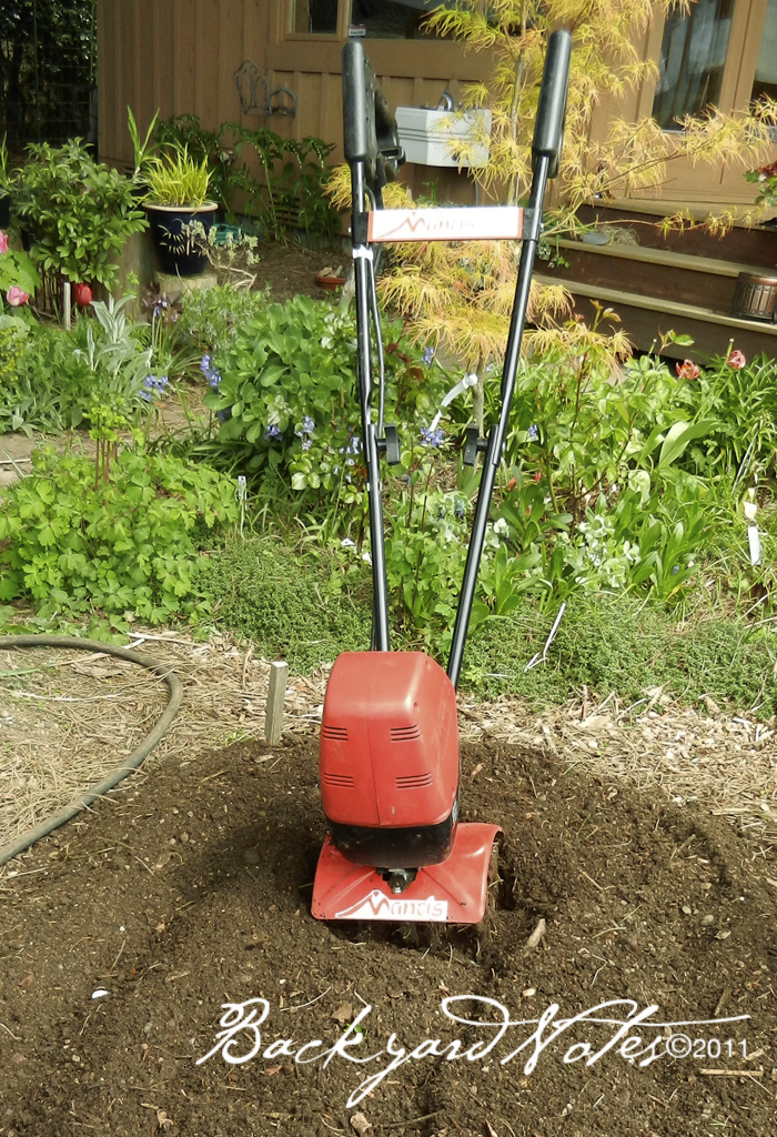 NEXT STEP is tilling it all in with my favorite garden device: the electric Mantis tiller.