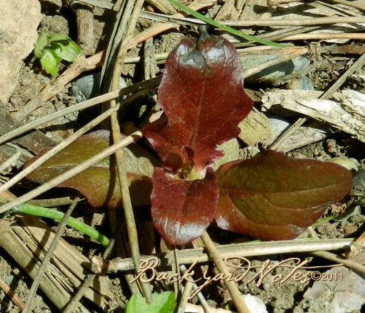 This is one of the lettuce volunteers that I have frequently mentioned; ready to move from the path into a newly tilled bed.
