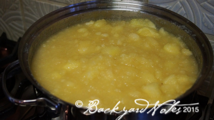 January rolled around and we getting ready to take off for the desert. There were still lots of apples in the box and mini-fridge that kept staring at me every time I walked into the garage. I couldn’t bear to toss them so I broke down and made applesauce–16 pints of it to be exact. The apples were still pretty firm, only a few soft or unusable. And by sitting around for a few months, the sugar had concentrated and they were very sweet. This batch of applesauce did not need the addition of sugar either.
