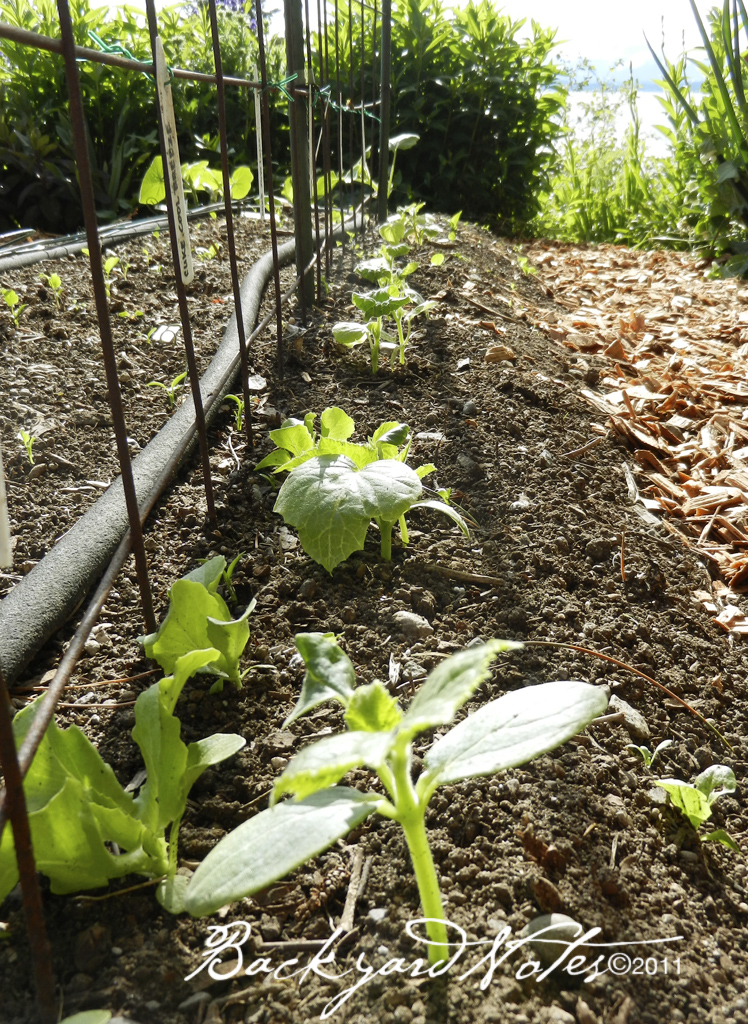 Before we took off on a ten day trip two weeks ago, I planted the cukes, squash, lettuce, broccoli, and brussels sprouts starts. And over the weekend I planted seeds (quite a bit later than normal) for radishes, fennel, beets, carrots, and two kinds of celery. I have had mixed success with celery in the past, but decided to try again.