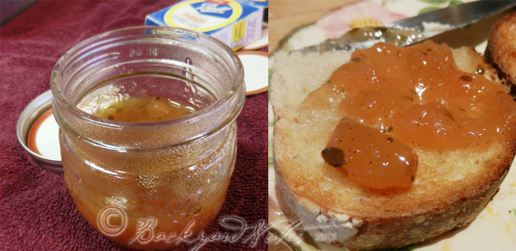The finished preserves, flecked with thyme leaves and vanilla bean seeds, were perfect on my morning toast.