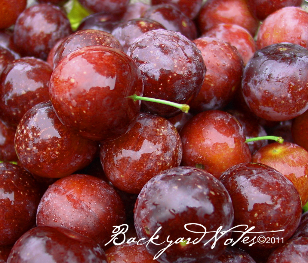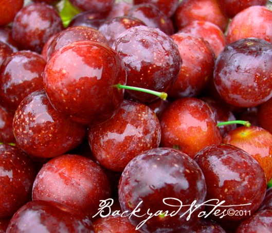 CHERRY PLUMS! One of our daughters has several old cherry plum trees growing on the property where she lives. Two years ago they were rather plentiful and none last year. Last week we managed to gather up a little over four pounds (we were a week too late for the best ones).