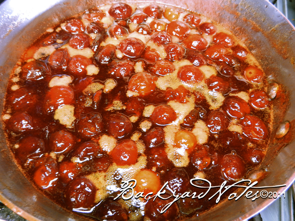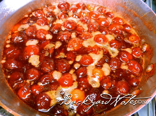 Cherry plums make some of the best preserves when flavored with star anise, vanilla bean, and a couple of fresh bay leaves. The yield was seven half-pints. Since the pickings are slim these preserves are highly coveted.