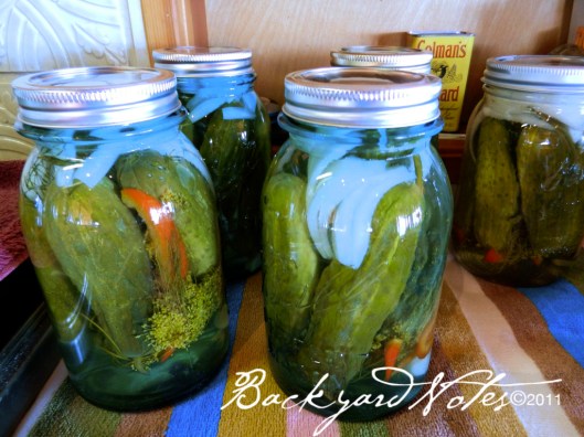 These are the finished pickles, ten quarts worth. Betty says not to open them before Thanksgiving. Time will tell whether or not I succeeded in matching Betty’s pickles.