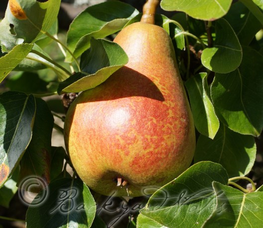 The pears are lovely and large again this year even without thinning. The Akane apples are a total loss due to the apple maggot but we have lucked out with the Spartans which are sweet-tart, crisp and picture perfect!