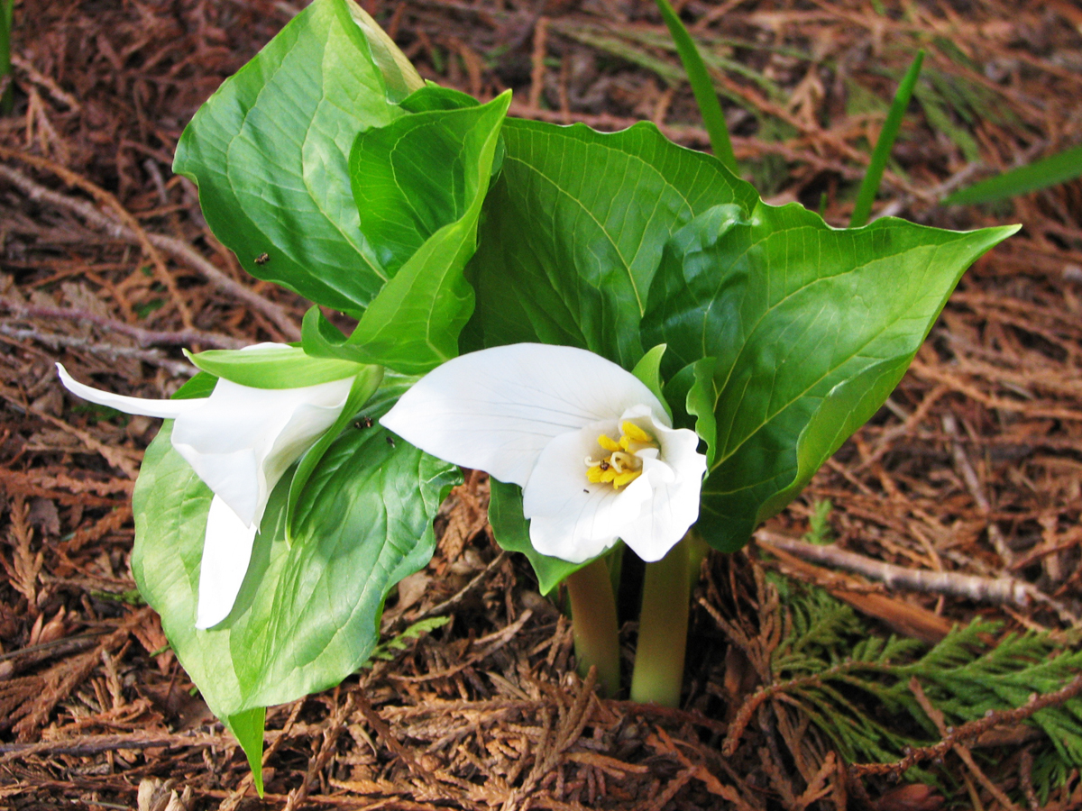 Trillium grandiflorum are in peak form with some are still emerging.