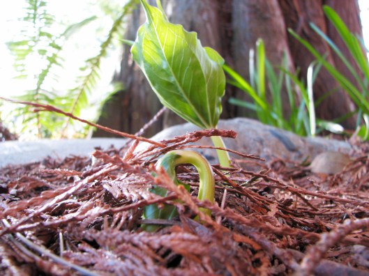 THIS kind of plant behavior always amazes me – I know it shouldn’t – but it does. Plants getting a foothold in the tiniest crack in a rock wall (and turning into large trees), the crotch of a tree, a little hole at the edge of pavement. The will to grow and reproduce is paramount and seems to take place against great odds. And this clematis is a case in point since I broke off a six inch piece of it when weeding – what a klutz! But, the roots are strong and there is new growth as seen in the photo above. Now I will baby it and see what happens this year. With luck it might bloom and then I will know which one it is.
