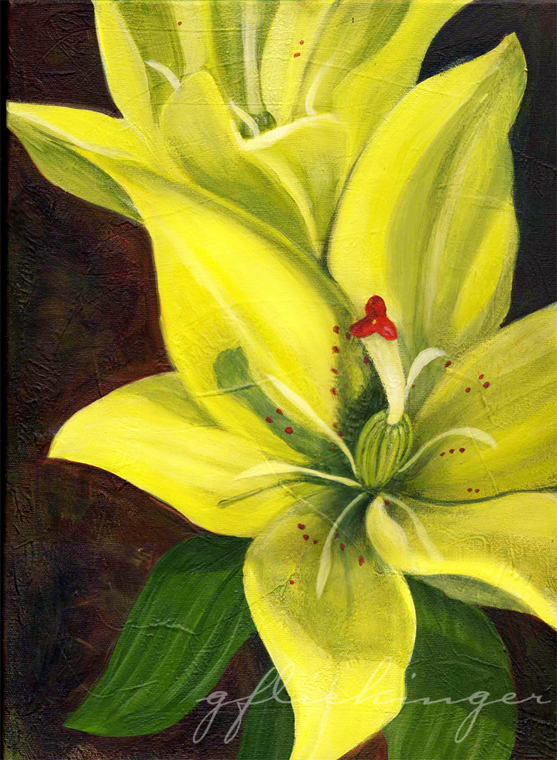 24 Wednesday Jul 2013 Original size at 557 × 760 ≈ Leave a comment Yellow lily; acrylic on canvas Daniel Smith Payne’s Gray, Sennelier Cad Red Medium, Daniel Smith Azo Yellow